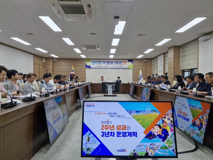 진도군은 군청 회의실에서 민선 8기 2주년 성과와 3년차 운영계획 안내 등 언론인 40여명이 참석한 가운데 간담회를 통해 기획 실장이 같이 밝혔다.