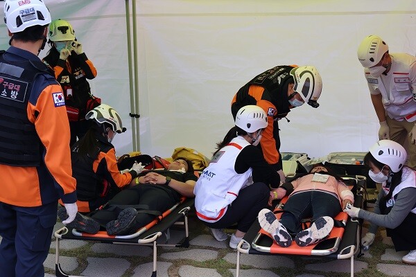 주요 훈련 내용은 ▲119구급대의 초기 대응 ▲환자 중증도 분류, 응급처치 및 이송 ▲현장 응급의료소 및 긴급구조통제단 운영 ▲관계기관의 상황별 역할 수행 등으로 구성됐다.