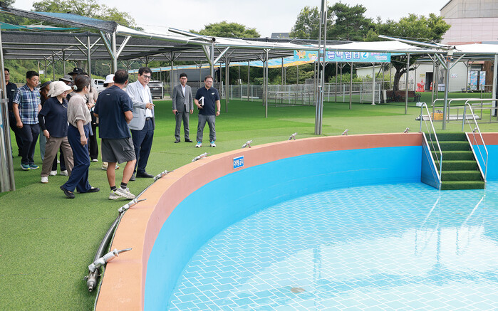 이 군수는 이날 파도풀, 워터슬라이드 등 주요 놀이시설과 수질관리 상황, 안전 매뉴얼 이행 현황을 꼼꼼히 점검했다.