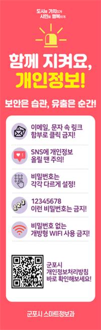 하은호 군포시장은 “개인정보 보호는 작은 관심과 실천에서 시작된다”며 “이번 캠페인이 개인정보 보호에 대한 시민들의 공감대를 넓히고 안전한 정보 환경을 만드는 계기가 되기를 바란다”고 전했다.