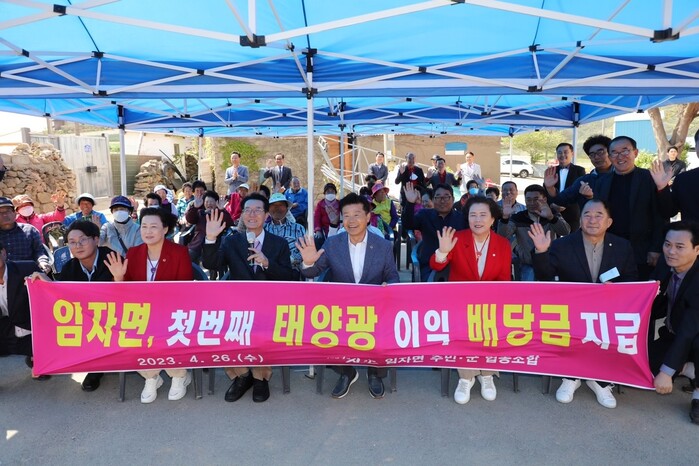 [신안=황승순 기자]신안군 신재생에너지 정책에 따른 ‘주민·군 협동조합’ 사무실 개소식을 한 지 3주 후인 26일, 임자도에서 첫 햇빛연금을 지급하였으며 신안군에서 5번째로 햇빛연금을 지급하게 된다고 밝혔다.