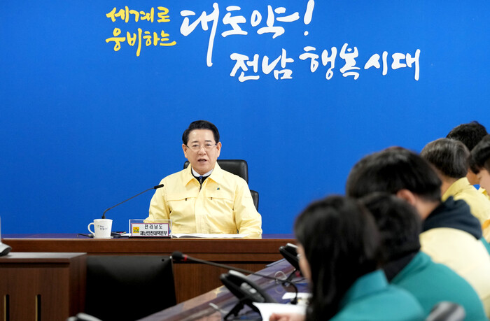 [남악=황승순 기자]김영록 전라남도지사는 11일 오전 재난종합상황실에서 대설·한파 대응상황 점검회의를 주재하며 주요 대응 상황을 점검하고, 도민 안전 확보에 총력을 기울일 것을 지시했다.