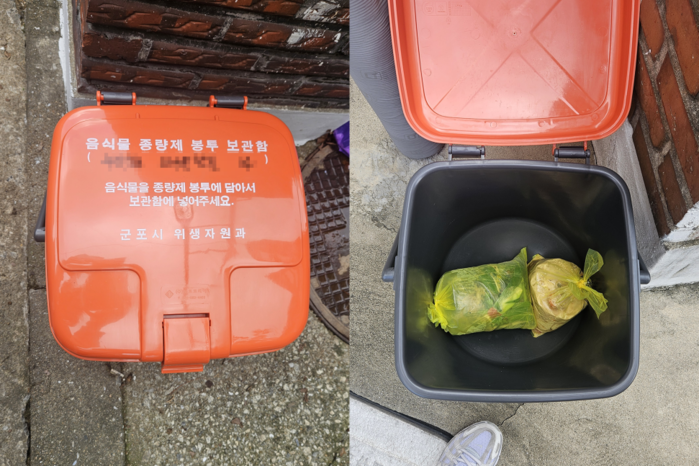 | ▲ 설치된 음식룰전용수거용기 모습 /사진제공=군포시 |