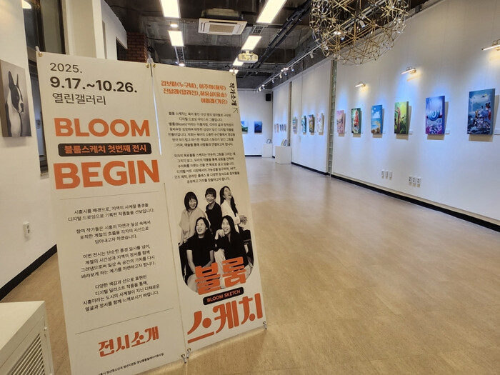 이번 전시에는 김보미(누구네), 진달래(달라진), 이주희(하루), 이미래(가온), 허윤실(윤슬) 등 청년 엄마 작가 5명이 참여했다. 이들은 아티스트 그룹 ‘블룸스케치’를 구성해 일상에서 발견한 아름다움과 감동을 디지털 드로잉으로 표현하며 따뜻한 감성을 전하고 있다.