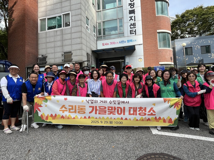 양애자 수리동장은 “주민들의 자발적 참여와 관심으로 수릿길이 더욱 깨끗하고 산뜻한 공간으로 탈바꿈할 수 있었다”라며 “앞으로도 생활환경 개선을 위한 다양한 활동을 주민과 함께 지속 추진해 살기 좋은 수리동을 만들어가겠다”라고 전했다.