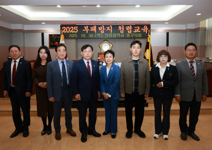 | ‘2025년 부패 방지 청렴 교육’ 참가자들이 포즈를 취하고 있다. (사진=중구의회) |
