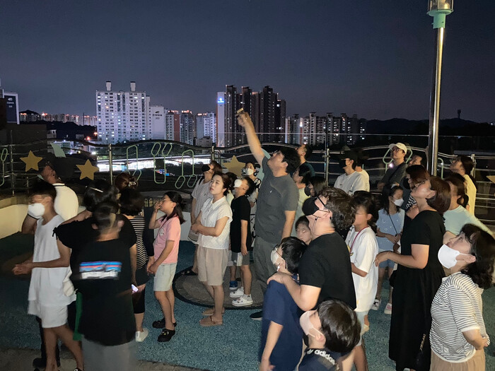 | ▲대야도서관 누리천문대에서 여름밤별자리 관측하고 있는 모습 /사진제공=군포시 |
