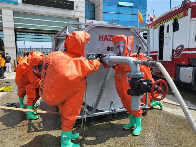교육훈련 과정은 ▲ 유해화학물질 사고 대응 매뉴얼 교육 ▲ 개인보호장비 착용법 ▲ 훈련용 구조물을 통한 유해물질 누출통제 훈련 등이다.