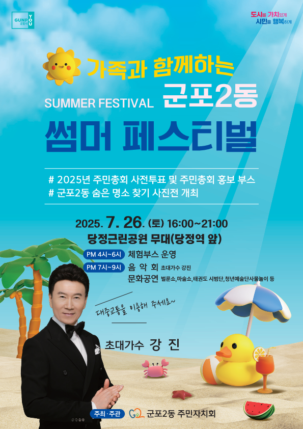 | ▲ 군포시 군포2동 주민자치회 오는 7월 26일 군포 당정근린공원에서 가족과 함께하는 썸머 페스티벌을 개최 안내 홍보문 /자료제공=군포시 |