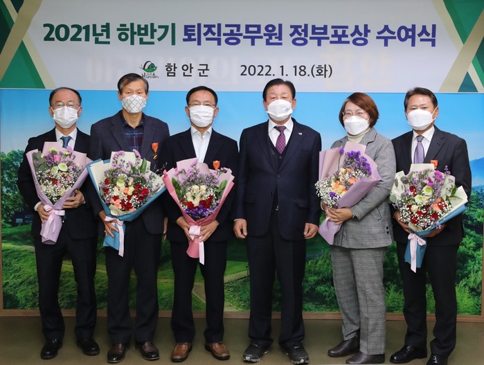 함안군은 18일 오전 11시 30분, 군수실에서 2021년 하반기 퇴직공무원들을 대상으로 정부포상 수여식을 열었다.