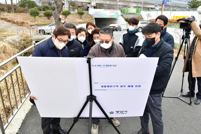 한편, 양산시는 개발제한구역 경계선이 관통하는 1,000㎡이하의 소규모 단절토지와 도로·철도 또는 하천개수로 인하여 단절된 3만㎡ 미만의 토지 등 해제가 가능한 지역에 대해 2022년 1월 용역 착수해 10월 완료 예정으로 개발제한구역 일부해제 용역을 시행한다.
