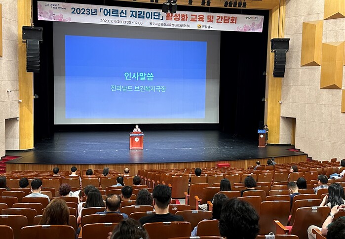 [남악=황승순 기자]전라남도는 4일 목포시민문화체육센터에서 시군, 읍면동 단장과 관계 공무원 600여 명이 참석한 가운데 ‘2023년 어르신 지킴이단’ 교육 및 간담회를 개최, 노하우를 공유하는 등 독거노인 안전에 앞장설 것을 다짐했다.
