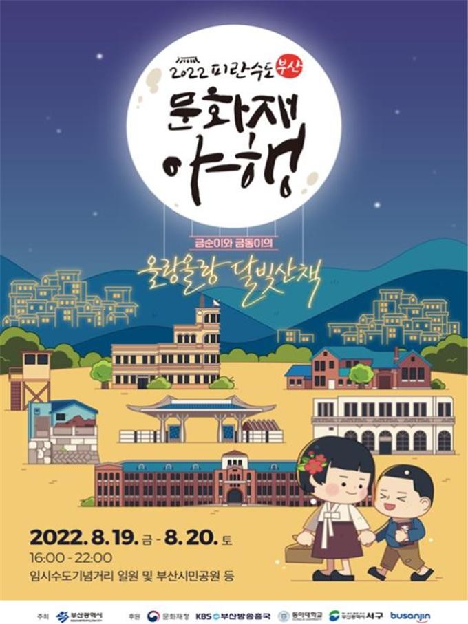 [부산=조병선 기자] 부산시(시장 박형준)는 8월 19일부터 20일까지 이틀간 동아대 부민캠퍼스 일대와 부산시민공원에서 「2022 피란수도 부산 문화재 야행(夜行)」을 개최한다고 밝혔다.