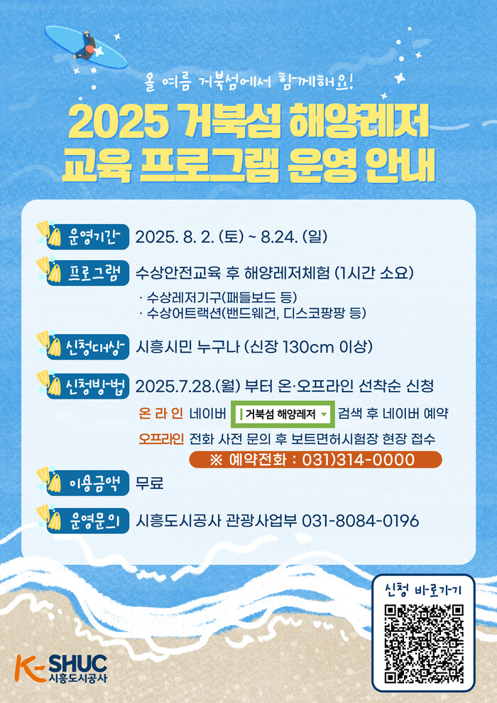| ▲ 시흥도시공사 여름 맞이 시화호 거북섬에서 시민들을 위한 특별한 해양레저 교육 프로그램 안내 홍보문 /자료제공=시흥도시공사 |