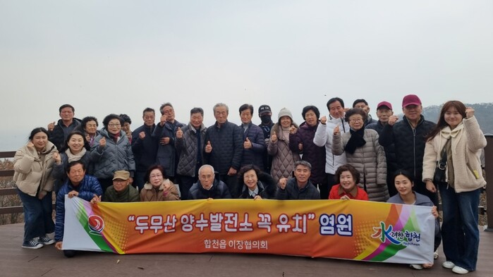 특히 이날 합천읍이장협의회는 두무산 양수발전소 유치지지 선언도 하며 두무산 양수발전소 유치 확정까지 긴장을 늦춰선 안된다며 마지막까지 유치를 위한 간절한 목소리를 높였다.