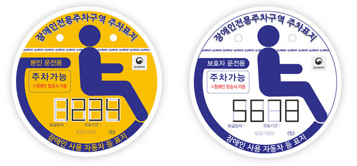 * 장애인이 이용하는 자동차 등을 지원하기 위해 장애인이 사용하는 자동차 등임을 알아볼 수 있도록 하는 표지.