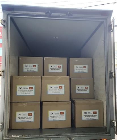 | ▲ 부산해외봉사단 기증물품 표식 |