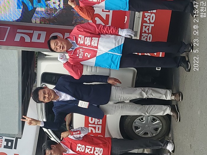공략사항인 KTX 역세권 개발로 지역경제를 활성화하고 농업기반 인프라를 대폭 개선하여 농사짓기 편한 도시를 만들겠다며 유세를 마쳤고 이어지는 김태호 국회의원의 찬조연설에서는 정권교체에 있어서 합천군민의 역할이 컸다며 대통령실과 소통하며 합천군 예산확보를 위한 가교역할을 할 수 있도록 다시 한번 국민의힘에 확실한 표를 모아 달라고 호소하며 지지연설을 마쳤다.