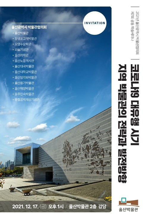 울산박물관은 울산광역시 박물관협의회(회장 신형석)이 오는 12월 17일(금) 오후 1시 울산박물관 2층 강당에서 ‘제7회 공동 학술 토론회(세미나)’를 개최한다고 밝혔다.