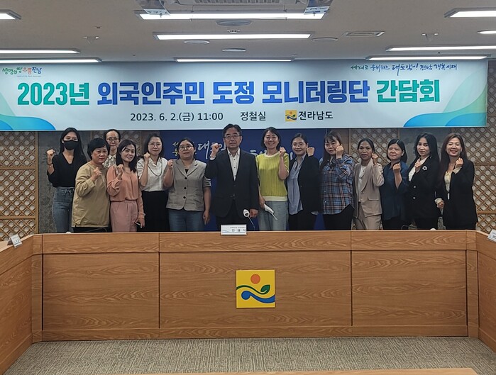 [남악=황승순 기자]전라남도는 최근 도청에서 ‘2023년 외국인 주민 도정 모니터링단 간담회’를 열어 외국인 주민의 지역사회 융화를 위해 일상 속 불편 개선, 정책·사업 등에 대해 소통하고 의견을 수렴했다.