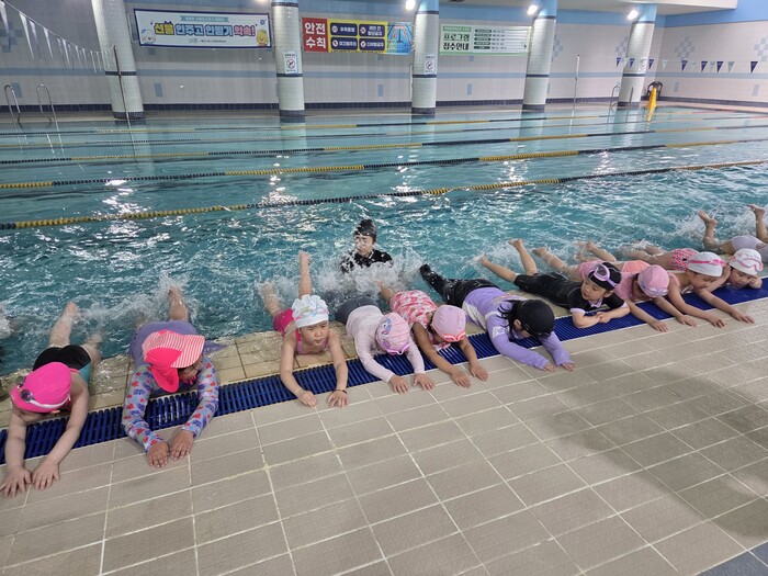 운영 기간은 지난 5월 1일부터 8월 28일까지로, 만 5세 유아들을 대상으로 1회 50명씩 총 5회에 걸쳐 수영 교육을 진행했다.