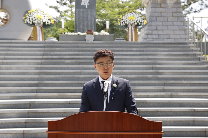 오전 10시 사이렌 취명에 맞춰 순국선열과 호국영령에 대한 묵념을 시작으로 헌화·분향, 유공자 표창, 추념사, 헌시 낭송, 현충일 노래 제창 순으로 실시됐다.