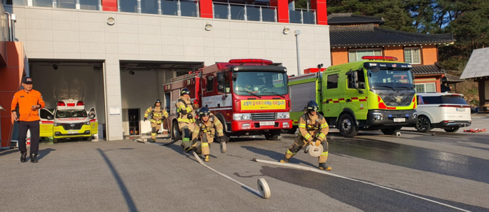 이번 훈련은 화재 현장 중계 송수를 활용한 건물화재 진압훈련으로 화재 대응 역량 강화를 위해 마련됐다.