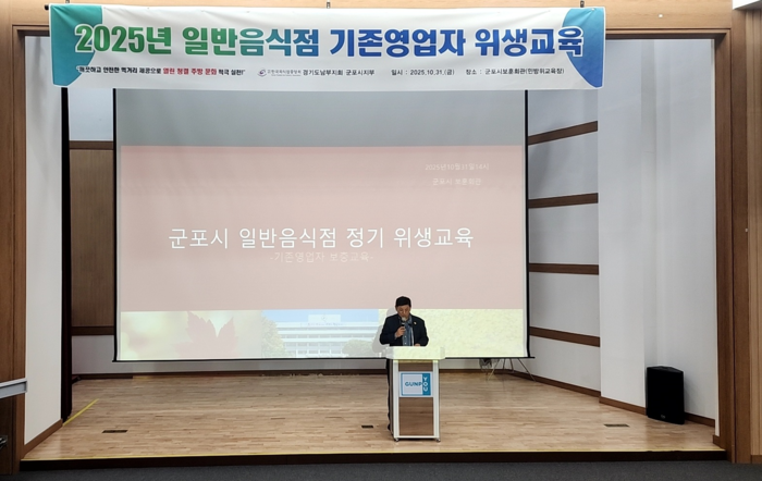 (사)한국외식업중앙회 군포시지부(회장 주성하) 주관으로 실시된 이번 교육은 식품위생법 제41조에 따라 영업자가 매년 3시간 이상 이수해야 하는 법정 의무교육으로 식품위생법 해설, 식중독 예방 및 위생관리 방법, 친절서비스 교육을 통하여 위생수준을 향상시키고 외식업소 경쟁력 강화를 위하여 마련됐다.