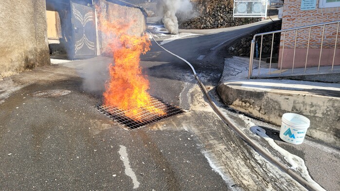 이날 야로면 나대리 도로 우수관에서 화재가 발생하여 신속하게 119 에 신고함과 동시에 마을주민이 소화기를 사용하여 초기 진화를 시도 하였다.