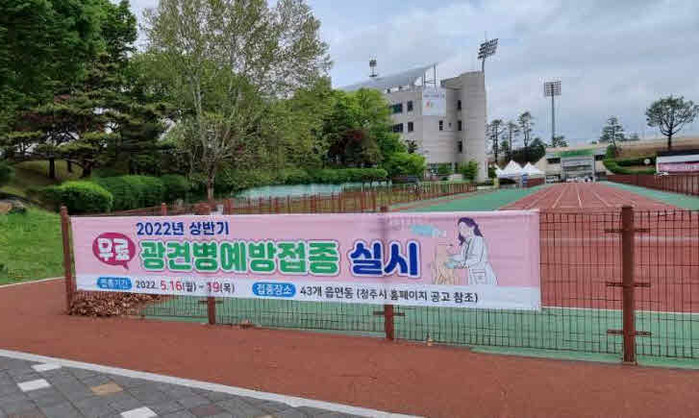 청주시는 5월 16일부터 19일까지 3개월 이상 된 반려견을 대상으로 상반기 순회 광견병 무료 예방접종을 실시한다.