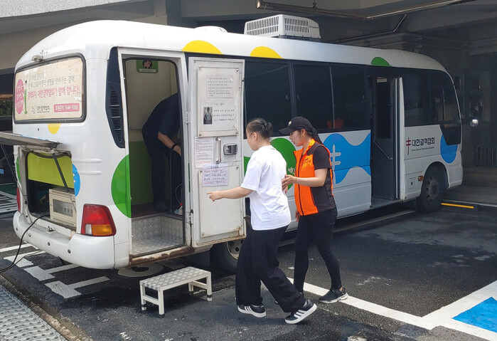 | ▲ 화성시아르딤복지관은 대한결핵협회 수원지부와 함께 지역 주민과 복지관 이용자를 대상으로 7월 1일 찾아가는 무료 결핵 검진을 진행했다 /사진제공=화성시아르딤복지관 |
