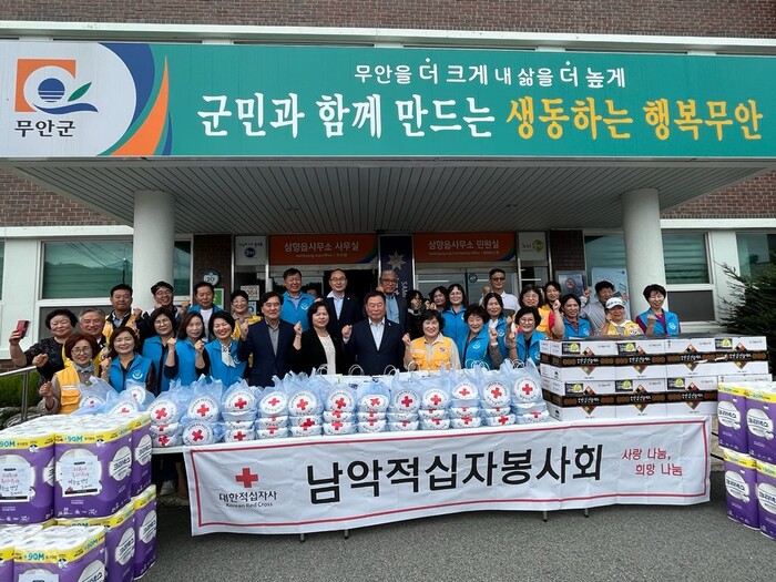 [무안=황승순 기자]무안군 삼향읍(읍장 김윤덕)은 지난 25일 관내 단체로부터 추석 명절을 앞두고 후원품을 기탁받았다는 훈훈한 미담을 전했다.