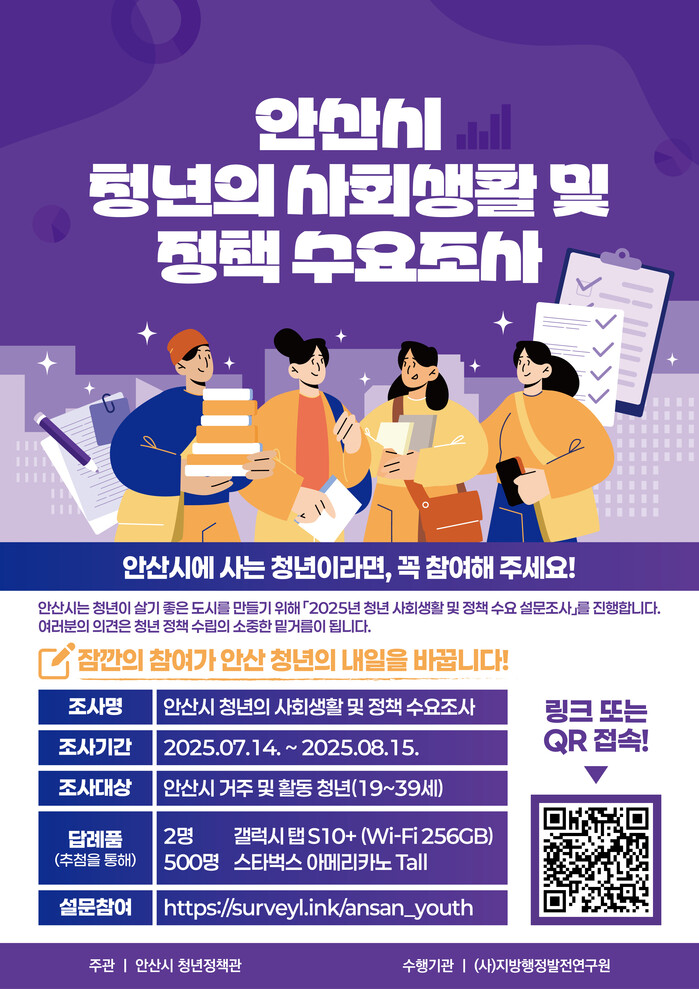 | ▲ 안산시 청년의 사회생활 및 정책 수요조사 안내 홍보문 /자료제공=안산시 |