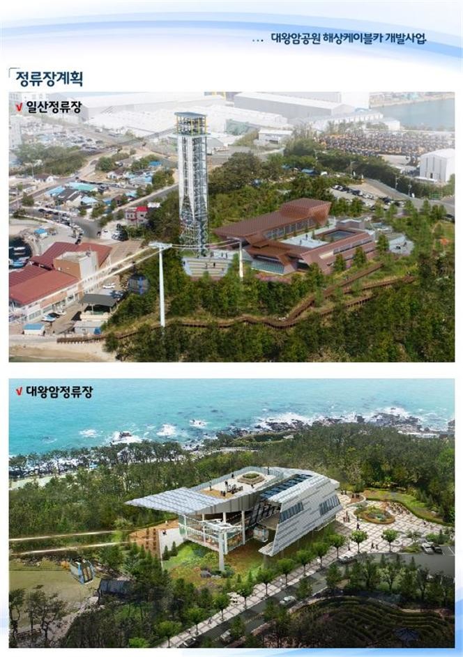 해상케이블카는 대왕암공원에서 일산 수산물판매센터 인근까지 1.5km 길이로 조성되며, 주변으로 940m 길이의 짚라인을 함께 설치할 예정이다.