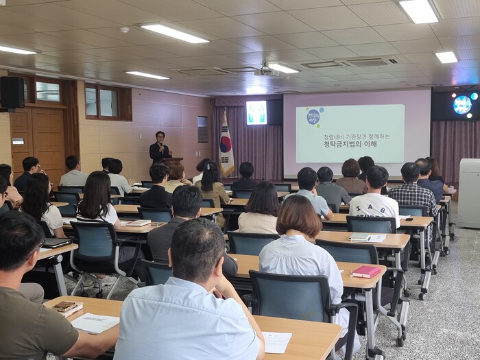 이번 특강은 기관장이 직접 사회자 및 강사가 되어 전직원들이 재미있게 습득할 수 있도록 우리 교육청내 업무와 관련된 청탁금지법에 관한 OX퀴즈를 통해 진행하고 그 법 조항에 대해 자세히 설명하는 방식으로 진행되었다
