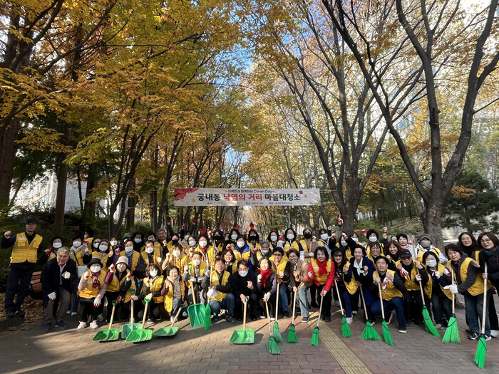 궁내동 7개 직능단체(주민자치회, 통장협의회, 바르게살기협의회, 새마을지도자협의회, 새마을부녀회, 지역사회 보장협의체, 자율방재단)로 구성된 궁내사랑자원봉사대는 지역발전을 위한 다양한 봉사활동을 전개하고 있으며, 이날 70여명이 모여 낙엽쓸기 마을 대청소를 진행했다.
