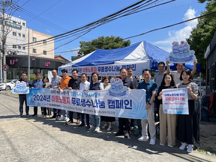 [구미=박병상 기자] 구미시는 지난 16일 구미노동법률상담센터의 주관으로 이동노동자들의 여름철 건강과 안전을 위한 ‘이동노동자 생수나눔 캠페인’을 실시했다.