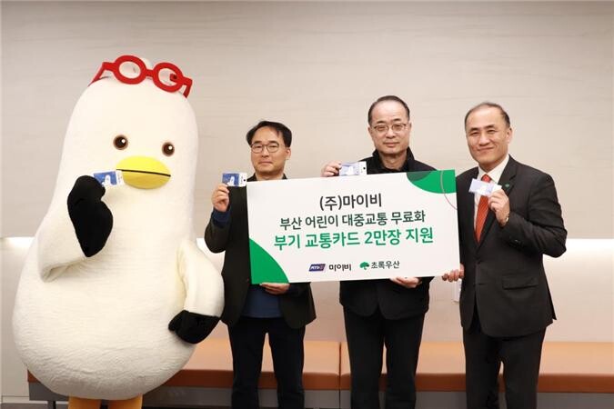 시 교통카드 운영사인 ㈜마이비는 교통카드 2만 장을 자체 제작해 초록우산 부산지역본부에 기부했다. 어린이가 대중교통을 즐겁게 이용할 수 있도록 시 홍보 캐릭터인 '부기'를 교통카드 디자인에 활용했다.