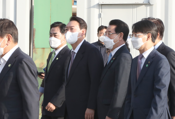 윤석열 대통령 당선인이 20일 당선 이후 처음으로 전남을 방문해 영암 대불국가산단에서 조선산업 현장을 둘러보며 기업인의 생생한 현장의 목소리를 들었다.