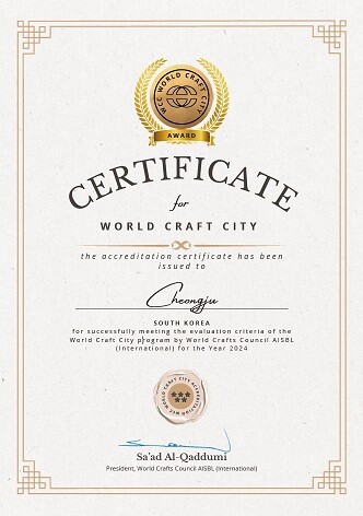 한편, 대한민국 최초 WCC 인증 공예도시가 된 청주시는 올 9월 개최하는 청주전통공예페스티벌은 물론 공예비엔날레, 한국공예관, 공예창작지원센터 등을 중심으로, 보다 확장되고 견고한 글로벌 공예협력체계를 만들 예정이다.