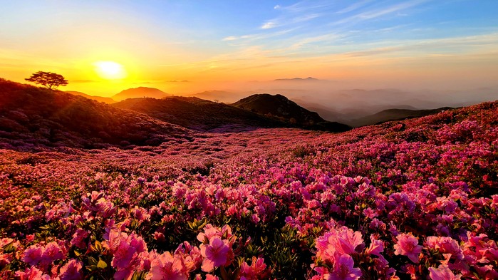 동계 올림픽 한국의 사계 봄편에 소개된 이곳은 전국의 사진작가들이 찾는, 이른바 최애(최고로 애정하는)장소로 대상 출품작이 이 장소에서 많이 나온다는 소문답게 떠오르는 해와 철쭉이 붉은 빛으로 세상을 덮는 찰나의 순간은 오전 6시가 되기 전 포토전망데크 빈자리가 없는 이유를 설명해준다.