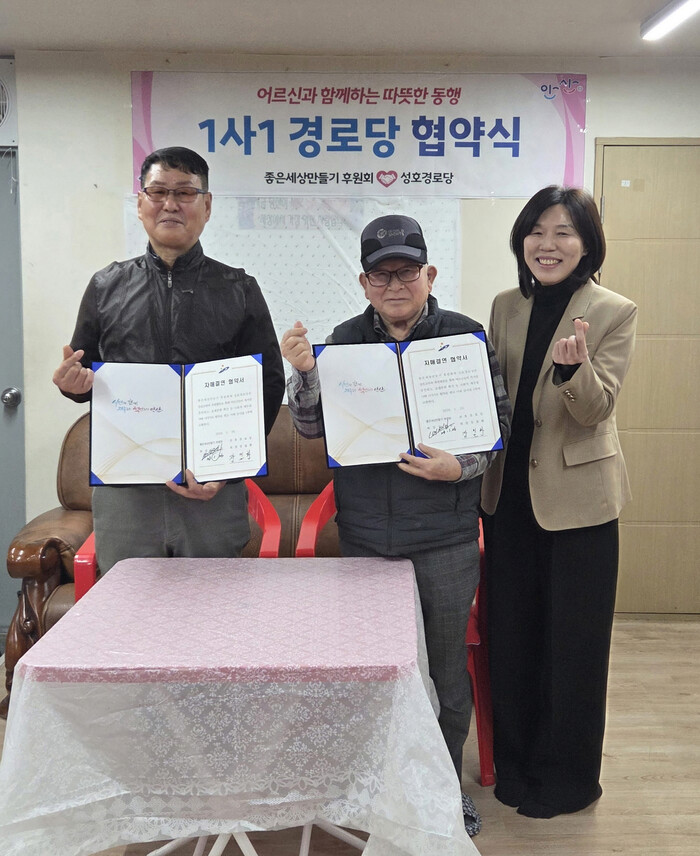 [안산=송윤근 기자] 경기 안산시(시장 이민근) 상록구 일동 행정복지센터는 지난 26일 좋은세상만들기 후원회와 성호경로당이 1사1경로당 협약식을 개최하고, 지역 어르신 복지 증진을 위한 정기후원 약정을 체결했다고 28일 밝혔다.