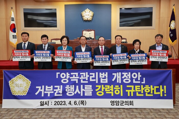 이에 영암군의회는 양곡관리법 개정안에 대해 재의요구권을 행사한 행위는 대한민국의 식량 안보를 완전히 포기하는 것과 같다고 규탄했으며 윤 대통령이 주장하는 ‘포퓰리즘 법안’에 대해 농업·농촌을 살리는 일은 단순히 형평성과 예산의 논리로 판단할 수 있는 문제가 아니라고 호소했다.