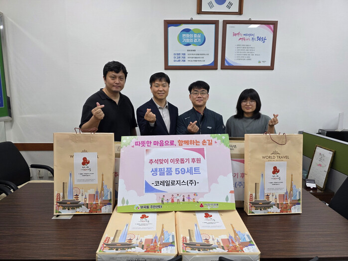 이날 코레일로지스는 부곡동주민센터를 방문하여 관내 취약계층을 위한 생필품 59세트(100만원 상당)를 기탁했다. 이번에 기부한 생필품 세트는 샴푸·치약 등으로 구성되어 있으며, 관내 홀몸 어르신과 장애인 등 총 59가구에 전달될 예정이다.