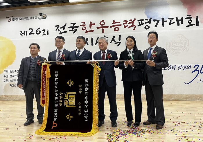 | ▲ 제 26회 전국 한우능력평가대회에서 영암군 한우 축산농가 우승 기념촬영 / 영암군 제공 |