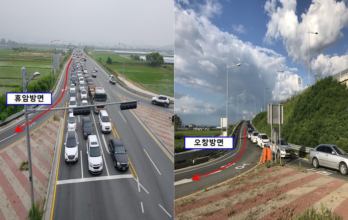 ▲청주산단방면 연결로를 227m로 확장하고 ▲오창방면 연결로 620m는 1차로에서 3차로로 확장하며 ▲오동방면 연결로 380m는 1차로에서 2차로로 확장함과 동시에 ▲휴암방면은 LG로의 우회전차로를 기존 130m에서 225m로 연장 설치한다.