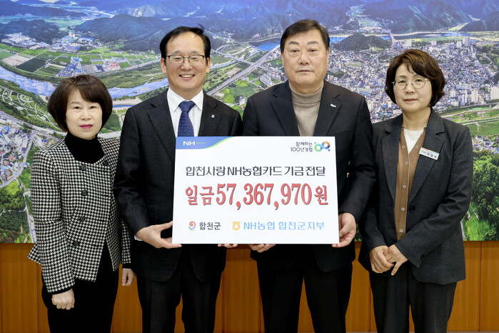 이날 전달된 기금은 합천군과 NH농협은행 합천군지부가 제휴카드 협약에 따라 사용액의 일정금액을 기금으로 적립하는 방식으로 조성 됐으며, 합천군은 매년 지역사회 발전을 위한 재원으로 활용하고 있다.