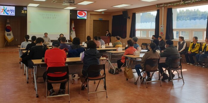 11월 한달간 총 4회에 걸쳐 진행하는 이번 사업은 8일 ‘우리 함께 건강지켜요’라는 제목으로 1회를 시작했으며 합천군 보건소 정신건강복지센터와 연계한 우울감 검사 및 심뇌혈관질환 예방 교육, 소방서와 연계한 심폐소생술 강의 및 실습으로 진행됐다.
