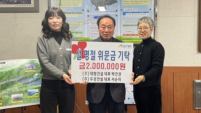 태왕·두강건설의 박간권·서순자 부부는 2007년부터 매년 명절마다 고향에 기부를 실천하고 있다. 올해도 어김없이 설 명절을 맞아 각 100만원씩 성금을 기탁하며 따뜻한 마음을 전달했다.