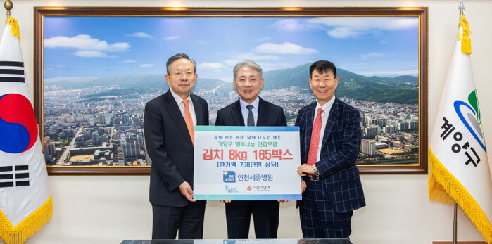 부천시와 계양구에 기탁한 김장 김치는 각각 1천320㎏(165박스), 1천320㎏(165박스) 규모다. 부천세종병원·인천세종병원 임직원과 자문위원회 위원, 세종병원사랑회 회원 등은 최근 ‘2025 사랑의 김장 나눔’ 행사를 열어 김장 김치를 담갔다.